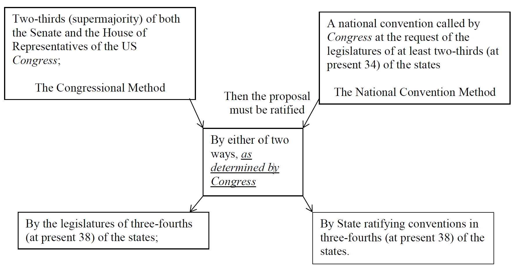 First consider the US Constitution’s Article V, which states with how the Constitution may be amended: